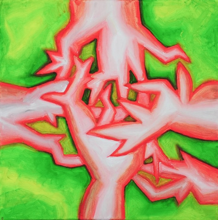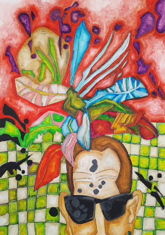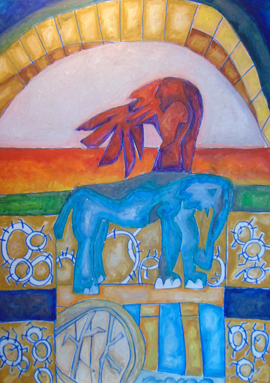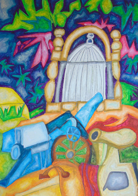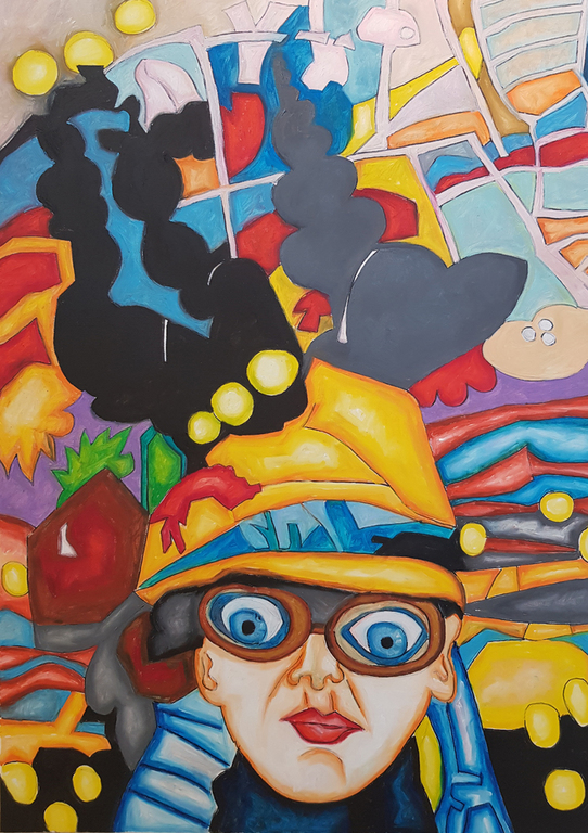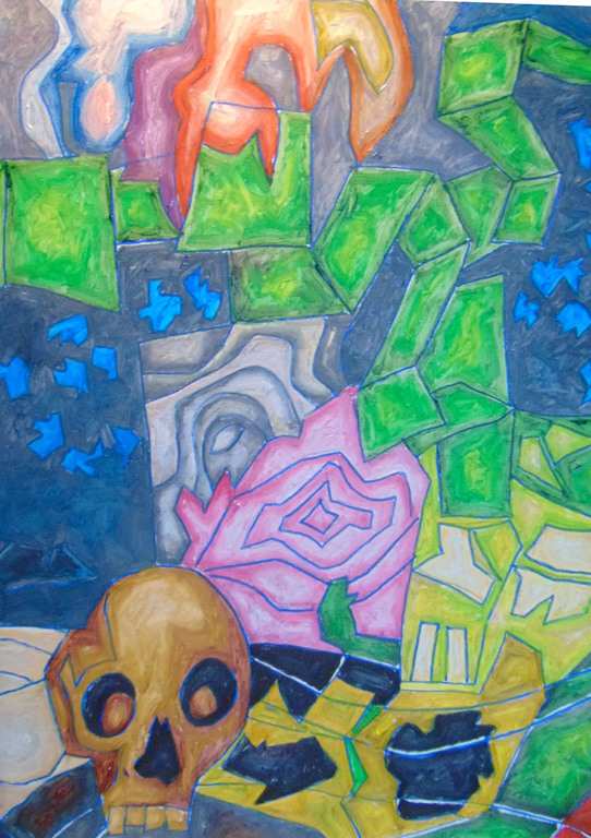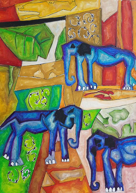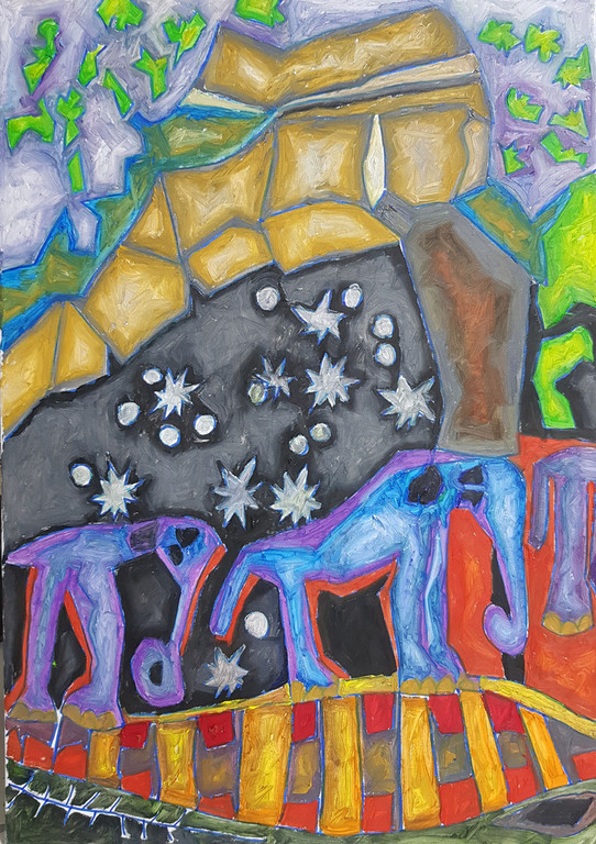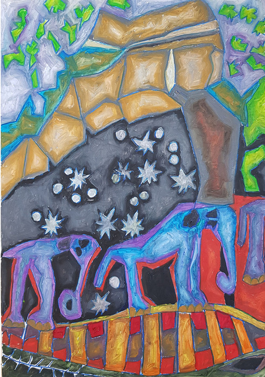 "Kreuzweg", 2018, ,Mischtecnik (Farbe, Collage auf Karton), 15 Kreuze, ca. 70 x 50 cm