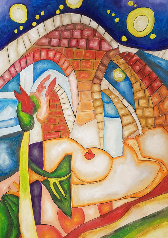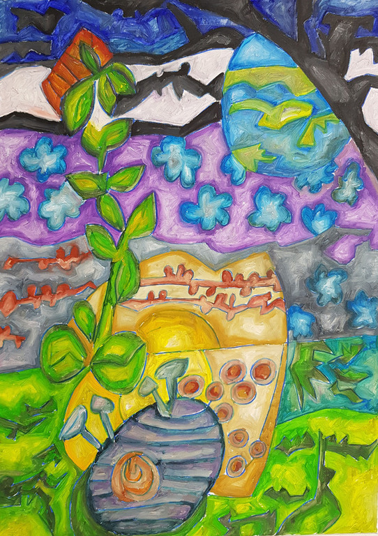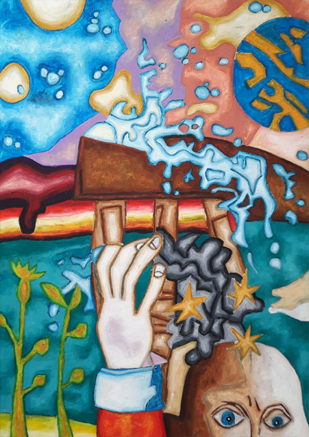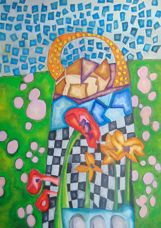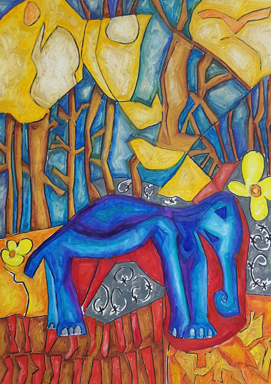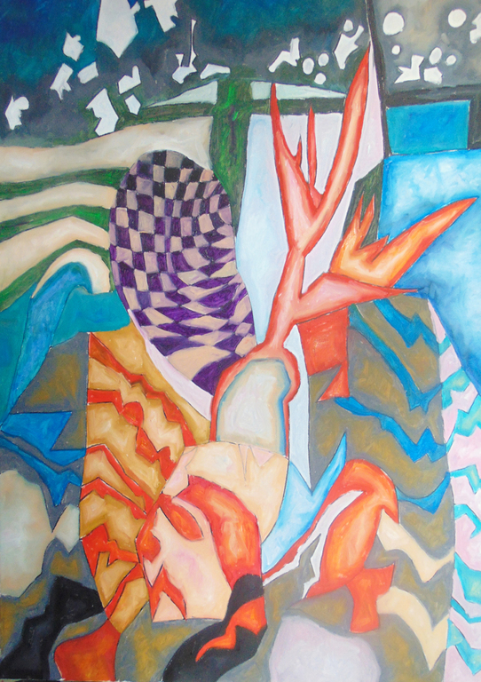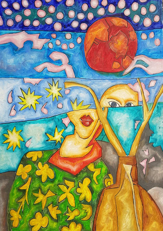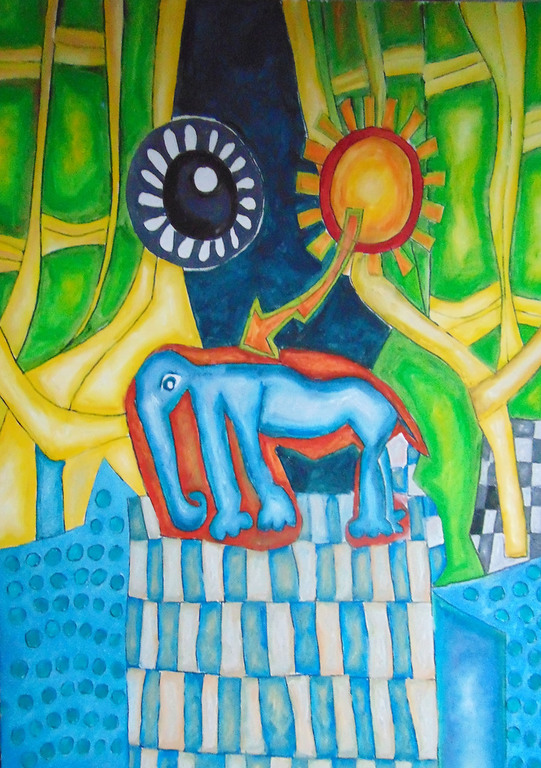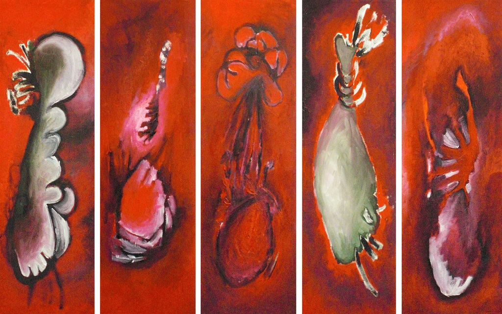 "Kreuzweg", 2018, ,Mischtecnik (Farbe, Collage auf Karton), 15 Kreuze, ca. 70 x 50 cm