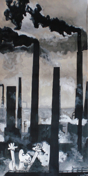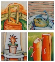 Neben meiner computergenerierten Arbeit male ich auch wieder und versuche in diesen Bildern einen Zusammenhang mit der Arbeit am Computer zu finden, was mir mehr schlecht als recht gelingt.