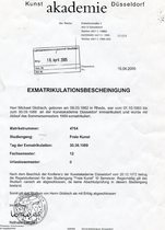 Nach dem bestandenem Abitur musste ich erst einmal zur Bundeswehr, obwohl ich mich schon gerne für ein Kunststudium beworben hätte. Das musste ich jetzt aber erst einmal hinten anstellen. Meine Bundeswehrzeit war recht kurz, weil ich krankheitsbedingt (wegen einer starken Sehschwäche) bereits nach drei Monaten der Grundausbildung schon wieder entlassen wurde. Leider war zu dieser Zeit bereits die Bewerbungsfrist für ein Kunststudium überschritten, das hieß, dass ich noch ein ganzes Jahr warten musste, um mich für ein Studium der freien Kunst bewerben zu können. Da jedoch für diese Bewerbung eine Mappe mit ausgewählten Arbeitsproben vonnöten war, hatte ich jetzt viel Zeit diese Mappe zu erstellen. 1982 begann ich dann damit, großformatige Bleistiftzeichnungen anzufertigen, mit denen ich sogar noch vor meinem Studium an Ausstellungen teilgenommen hatte. Außerdem übte ich mich jetzt im Umgang mit Farben und verschiedensten Mal- und Zeichentechniken. Alle so entstandenen Bilder sammelte ich fleißig in meiner Mappe, um diese dann der Prüfungskommission in der Düsseldorfer Kunstakademie vorzulegen. Ich hatte mich bereits entschlossen, mich an dieser renommierten, wenn nicht gar besten Kunstakademie Deutschlands zu bewerben. Weitere Bewerbungen an anderen Kunsthochschulen und Akademien kamen für mich nicht in Frage. Meine Kunstlehrerin, die ebenfalls an der Düsseldorfer Akademie studiert hatte, unterstützte mich auch nach dem Abitur noch mit guten Ratschlägen und Tipps, die ich gerne von ihr annahm.